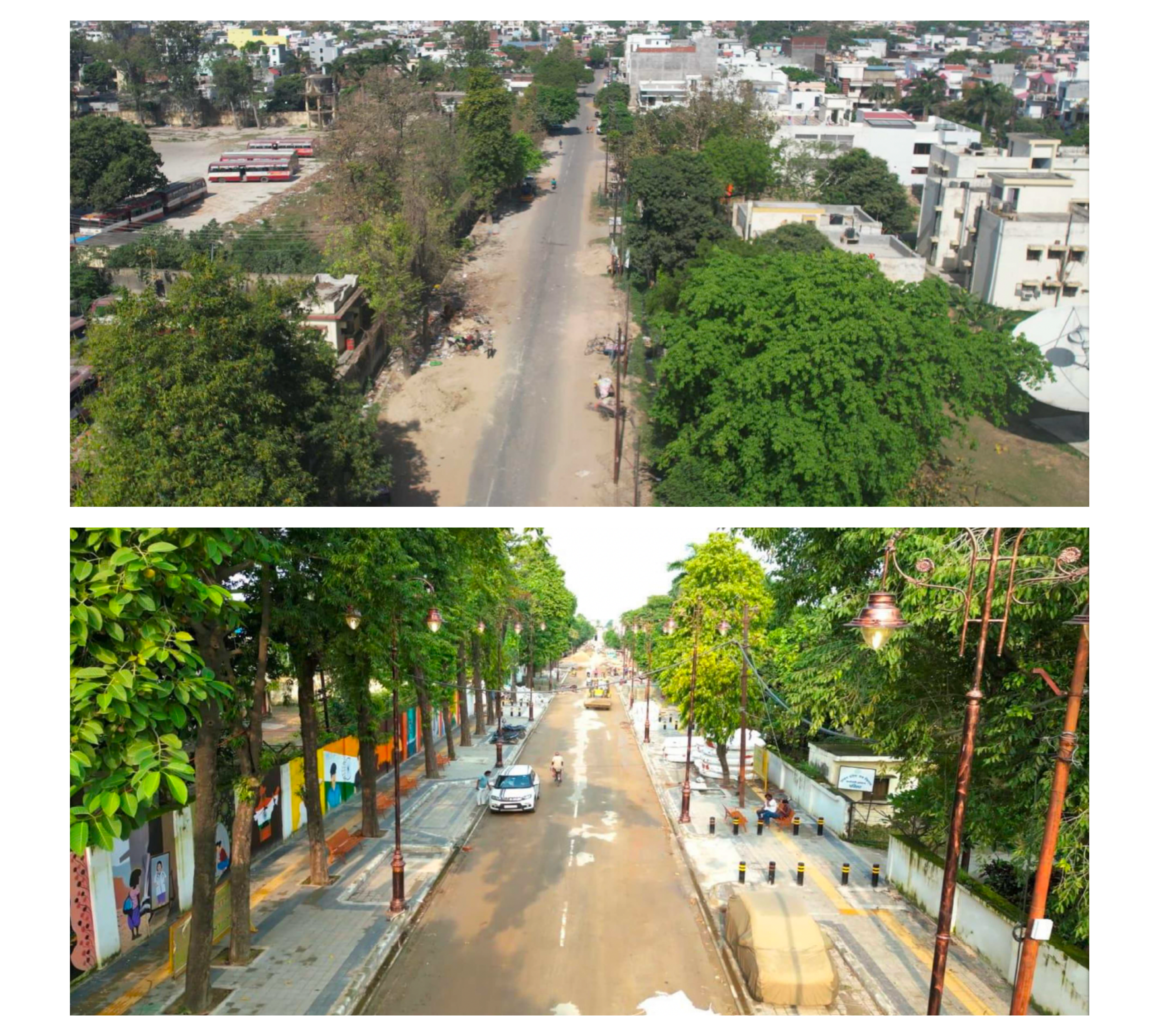 The Chief Minister Green Road Infrastructure Development Scheme (Urban) is a flagship initiative of the Urban Development Department, Government of Uttar Pradesh, aimed at transforming urban roads into integrated, safe, inclusive, and sustainable complete streets.. The scheme is being implemented across 17 Municipal Corporations in Uttar Pradesh. Roads are strategically selected based on their urban importance and footfall, with priority given to corridors adjoining hospitals, institutional buildings, commercial areas, markets, and major transportation hubs. In the current phase, a total of 151 roads (51 + 51 + 49 across phases) have been identified for intervention. Each selected road has a distinct character and local context, varying in land use, right of way, traffic patterns, and surrounding activities. Accordingly, every road is planned and designed as a context-sensitive complete street, responding to its unique functional, social, and spatial requirements.
