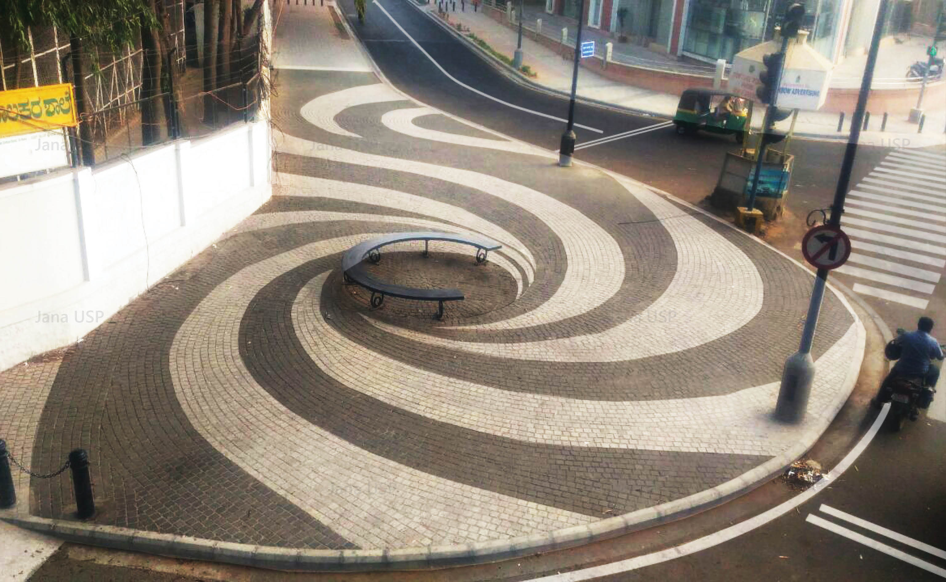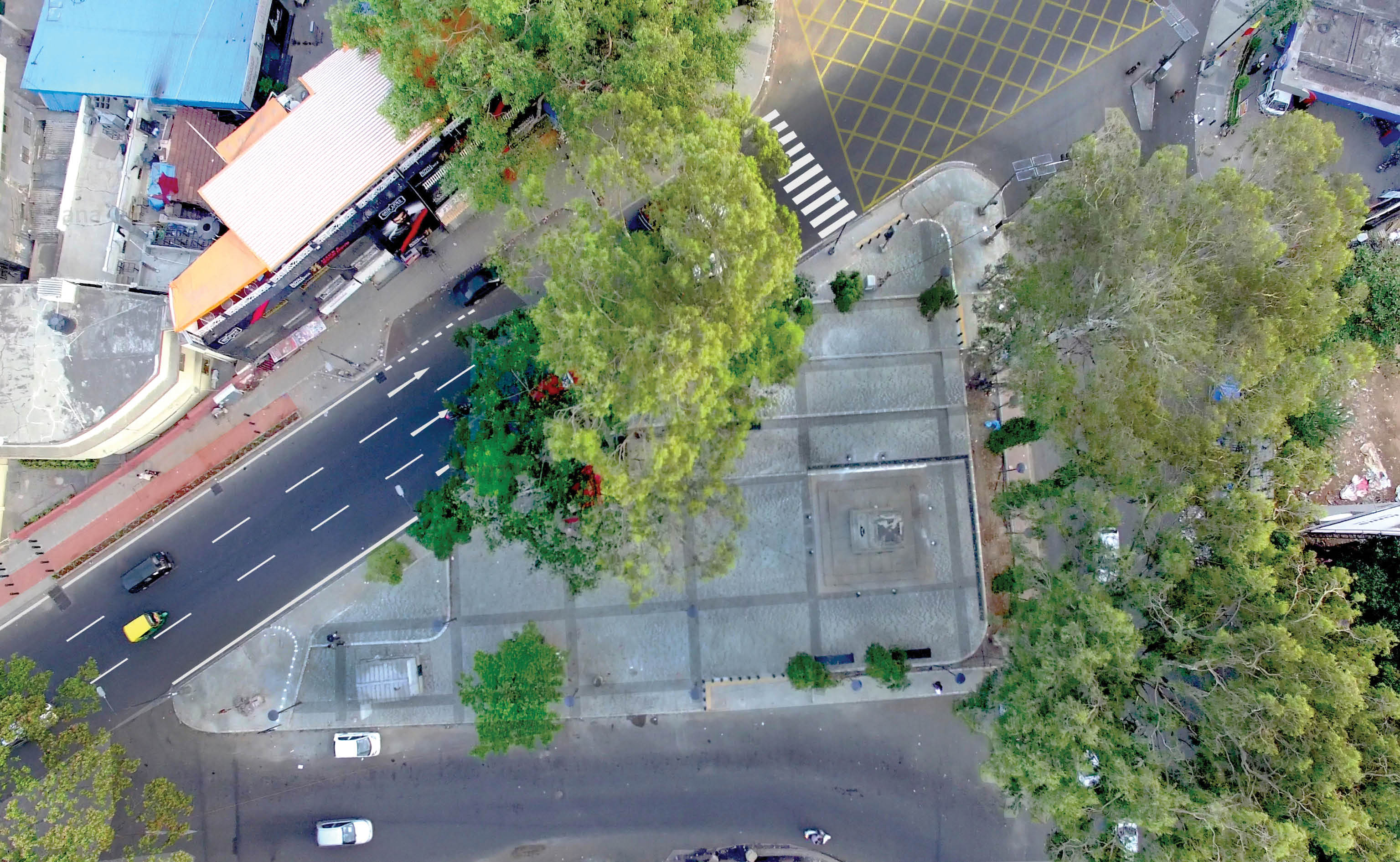 As a large volume of traffic turns left onto Museum Road at Cariappa Circle, the second segment from Cariappa Circle to Mayo Hall has been designed with three travel lanes of uniform width and comfortable footpaths on both sides. There is a cycle track on one side of the road till Brigade Road post which the cyclists share the travel lanes with the motorized vehicles. This section of the road has minimal parking and an organized auto-rickshaw bay. Three landmark intersections with public space has also been designed for the city as part of this road.