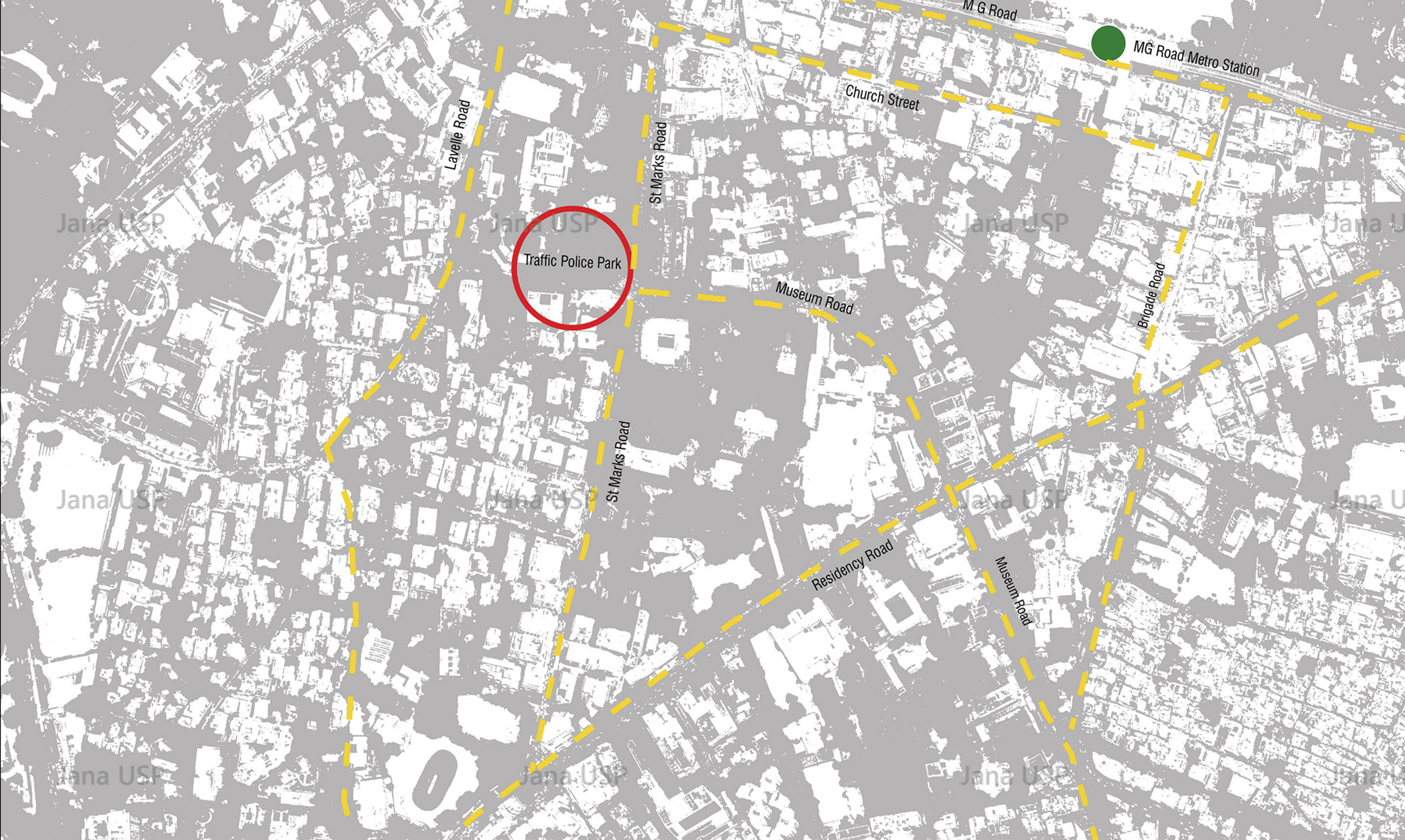 The Traffic Police Park is located off the St.Marks Plaza, at the junction of St.Marks Road and Museum Road, both of which were redeveloped under Tender SURE phase 01. With the inauguration of the plaza, fountaion and footpaths around the park, a redesign for the same was proposed to connect it to the streets and enhance the user experience.